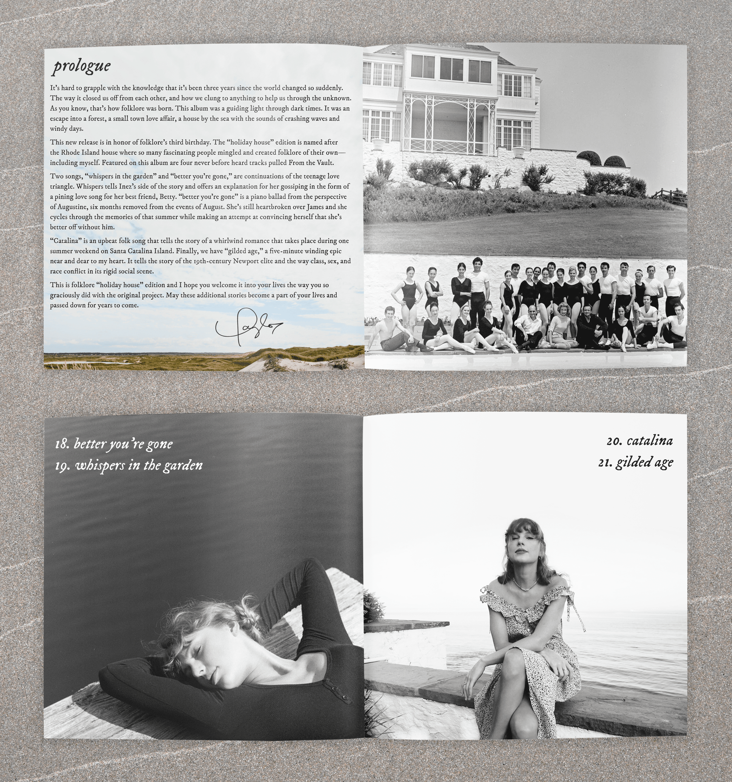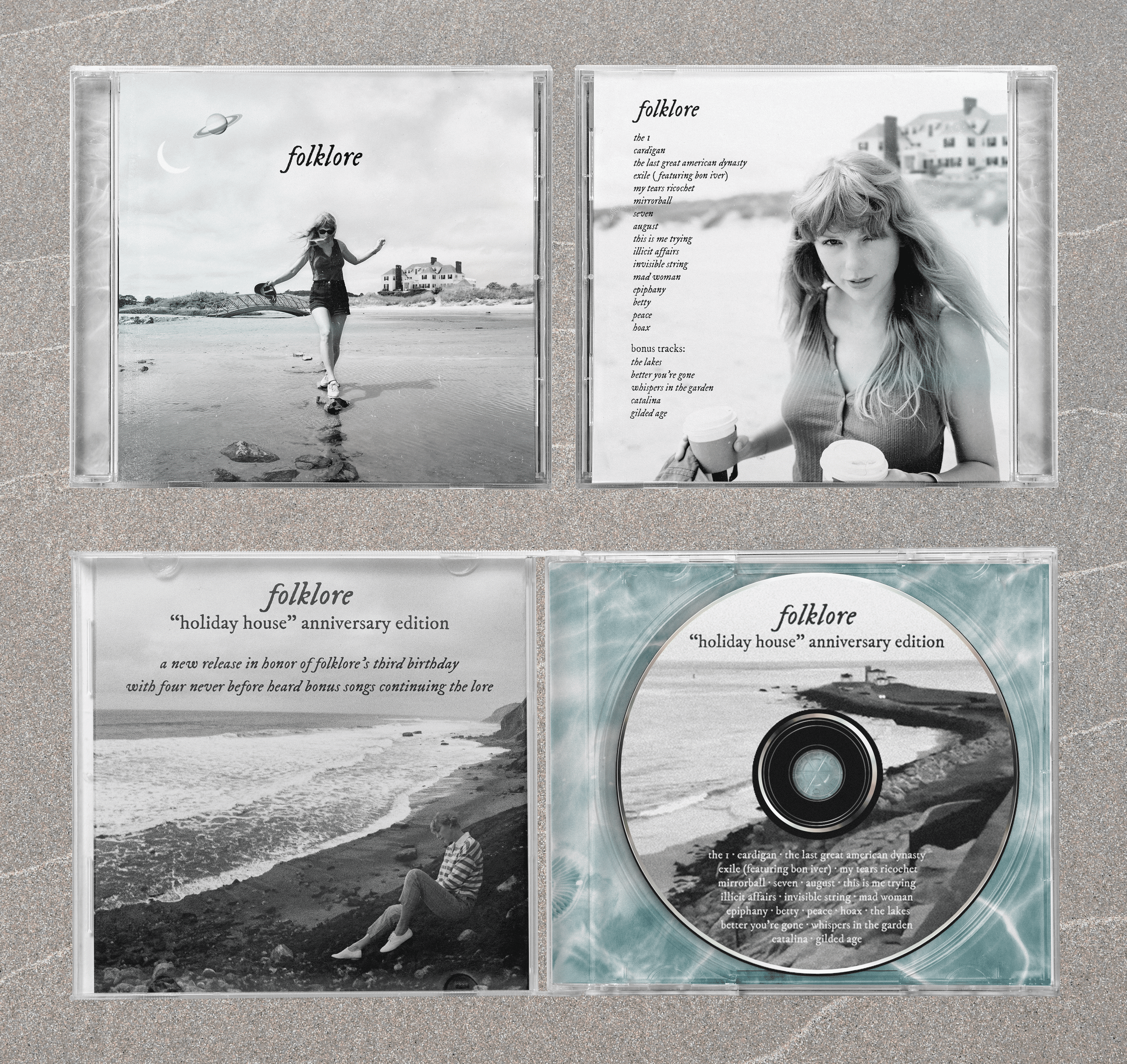 folklore: “holiday house” edition is an anniversary release concept of Taylor Swift’s 2020 quarantine project folklore. Pulling from the story told in “the last great american dynasty,” the holiday house edition expands on the lore of the titular Rhode Island house owned by Swift. In this edition, we leave the folklorian woods and go to the beach.
